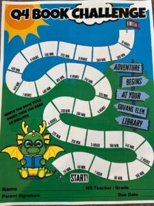 She made other improvements to the library including genrefying the collection, grouping the books according to themes, and even moving the books to be forward-facing. Each quarter she hosts a Book Challenge for all Pre-K through 5th grade students. Every student who completes the challenge and returns a signed paper, receives a book to keep and a medal. “A few lucky students earn a bigger prize as well through a raffle,” she says. “I think some of these strategies have improved circulation, but I have more ideas for the upcoming school year!”